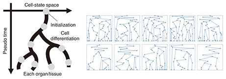 In the context of relational data analysis, unknown knowledge can be interpreted as rectangular partitioning for interpreting observational data. Therefore, research has been conducted on the construction of AI models for inferring rectangular partitioning hypotheses from relational data. By leveraging AI to infer the certainty or uncertainty of various rectangular partitioning hypotheses, we expect to gain clues for resolving medically unexplained symptoms. What are the most important requirements for constructing such an AI model? One important requirement is that the AI must be able to imagine all possible rectangular partitioning hypotheses without omission. In medical and healthcare applications such as interpreting medically unexplained symptoms, if there are hypotheses that the AI cannot even imagine and the truth lies within those hypotheses, the AI’s reasoning may overlook the truth, which could ultimately have a serious impact on our lives and health. Driven by this motivation, research has been conducted to develop AI capable of imagining all possible rectangular partitioning hypotheses without omission and inferring their certainty or uncertainty. In 2007, an AI model capable of imagining all rectangular partitions belonging to the regular-partitioning class was developed, and in 2009, an AI model capable of imagining all rectangular partitions belonging to the hierarchical-partitioning class was developed. However, these regular and hierarchical partitions are limited to only a small subset of all rectangular partitions, and an AI model capable of imagining all rectangular partitions has not yet been achieved. Our research team’s contribution lies in successfully constructing an AI model capable of imagining all rectangular partitions using two methods between 2020 and 2021 [1, 2]. This was achieved by introducing a mechanism that indirectly imagines rectangular partitions, which appear to be difficult for AI to imagine directly, using permutations (i.e., sequences of numbers), which are easy for AI to handle, on the basis of the fact that the set of all rectangular partitions can be one-to-one mapped to a specific class of permutations, using knowledge from combinatorics. Through several real-world benchmark datasets, we have confirmed that the ability to imagine any rectangular partition, not limited to restricted classes as in the past, contributes to the high functionality and reliability of AI models. With this achievement, we can now guarantee that AI has the ability to imagine any rectangular partition without omission. Going forward, we aim to further enhance this inference capability to achieve higher precision, thus derive important insights from relational data analysis that could lead to solutions for various medically unexplained symptoms in the real world. 3. Phylogenetic analysisLike cell differentiation and genetic mutations, the technique of inferring a phylogenetic tree from objects that exhibit systematic evolution and developmental structures over time is called phylogenetic analysis, and it has played an important role in various applications. For example, phylogenetic analysis of the differentiation structure of induced pluripotent stem cells (iPSCs) has attracted significant attention as one of the most promising applications. Such cells possess a certain degree of differentiation potential and expected to have the potential to be induced to differentiate into various tissues and organs. Therefore, if we can understand the principles of their differentiation and induce them appropriately, it may be possible to create transplantable organs and tissues by converting somatic cells obtained from patients into iPSCs and culturing them. By creating cells from diseased tissues that were previously difficult to obtain, it may be possible to contribute to understanding the mechanisms of disease onset and identifying effective treatments and drugs. From another perspective, phylogenetic analysis has also been used as a useful tool for inferring the origin of infectious diseases and identifying clues to prevent their spread during recent global pandemics. Genes associated with infectious diseases generally undergo systematic changes through events such as mutation, fusion, and recombination during their expansion. Therefore, tracing the phylogenetic tree of their development may provide clues to their origin and transmission routes. In the context of phylogenetic analysis, unknown knowledge can be represented as a Cambrian tree, as shown in Fig. 2. This represents the systematic variation of genes as a phylogenetic tree using events in which a parent gene branches into two child genes and events in which recombination occurs from two parent genes to one child gene. Such phylogenetic trees can generally involve a vast number of hypotheses, so there has been interest in developing technologies that can infer phylogenetic trees using AI. What are the most important requirements for such AI? Similar to the rectangular partitioning hypothesis for medically unexplained symptoms, we believe that the ability to imagine all possible Cambrian-tree structures hidden in the data is important. How can we develop an AI that can imagine all Cambrian-tree hypotheses without omission and infer their certainty and uncertainty? Interestingly, similar to the relationship between rectangular partitioning and permutations in the aforementioned relational data analysis, it is known in combinatorics that the set of all Cambrian trees is in one-to-one correspondence with a special set of permutations. By leveraging this fact, we have successfully constructed an AI model capable of indirectly imagining all Cambrian trees through permutations [3, 4]. We aim to use this AI model to infer the differentiation structure of iPSCs and elucidate its mechanisms, thus uncovering important insights that could contribute to the future development of regenerative medicine.