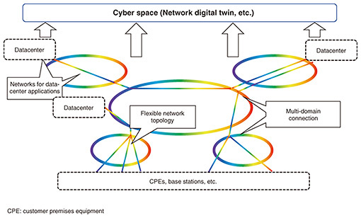 Most of the technical discussions in SGs are conducted in WPs and Questions. SG13 establishes other types of groups to conduct activities which are more supported by flexible environments. A Focus Group (FG) is a group defined for specific subjects that require short-term and intensive efforts. The work methods of FGs are defined in ITU-T Recommendation A.7. Limited lifetime (usually 1 year) and participation of non-members of ITU-T are major features of FGs. SG13 established FGs for the works on IMT-2020, cloud computing, and AI applications and produced the study results accelerating the work for ITU-T Recommendations in these fields. FG-AINN (Focus Group on AI-Native Networks) is in operation to promote the study on AI native networks. A Joint Coordination Activity (JCA) is a group for coordinating specific study subjects across SGs in ITU-T as well as standards development organizations. Two JCAs are currently in operation: JCA-AI/ML, which coordinates AI/ML related studies, and JCA-IMT 2030, which coordinates IMT-2020 and beyond related studies. SG13 also closely cooperates with JCA-QKDN (Joint Coordination Activity on Quantum Key Distribution Network), although this JCA is not under SG13. A Reginal Group (RG) is a group to promote the work of SGs in the designated region. Two RGs, SG13 RG-EECAT (SG13 Regional Group for Eastern Europe, Central Asia and Transcaucasia) and SG13 RG-AFR (SG13 Regional Group for Africa), are currently in operation. RG-AFR works closely with Question 5, which is responsible for future networks in developing countries and encourages contributions from the African region. 3. Recent technical discussions3.1 Low-latency and energy-efficient networkThere has been a growing demand for low-latency communication in the field of distributed cloud computing and radio access networks of mobile systems. Energy consumption of telecommunication networks is also gaining the attention of industry experts. The current packet-based networks have limitations of low latency and energy efficiency; thus, a new technical approach is needed. The All-Photonics Network (APN) is one possible solution to overcome the limitation of low latency and energy efficiency by existing packet-based networks. Although the APN is being established as an enabler of low-latency and energy-efficient communication, there remain unresolved issues such as how this APN technology is used in large-scale networks across different network operators. ITU-T is expected to resolve such issues for actual deployment in public networks. At SG13 meeting in July 2024, the volunteer companies including NTT and KDDI submitted a contribution proposing the new work item for draft ITU-T Recommendation Y.L2E2net-frm. This draft recommendation aims to describe the framework of the future network with the features of low latency and energy efficiency as exemplified by the APN. As shown in Fig. 2, the scenarios of the network described in this draft recommendation cover connection between datacenters and between a datacenter and terminals or base stations with flexible network topologies supporting data backup and flexible wireless access networks. The network in this draft recommendation may consist of multiple domains as appeared as rings in Fig. 2.