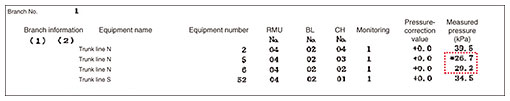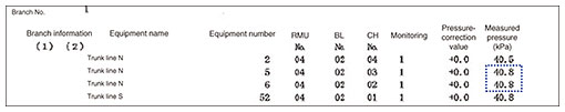 The pressure of the compressed air (supplied from the telecommunications building) in the cable in question was 44.1 kPa but decreased to 26.7 to 29.2 kPa in the section of trunk line N between maintenance holes Nos. 5 and 6 (Fig. 7).