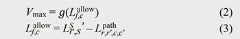 When the above conditions are met and the target VFR is not the first VFR of the service, the shortest path (c, c') is determined using the Dijkstra method. When the previous VFR is divided, since there are several start/end points, the shortest path is calculated by all start/end points. If there is no shortest path in the allowable bandwidth, the target VFR cannot be allocated to the computational resource. If there is a shortest path, we determine the maximum allocatable processing velocity (Vmax) of the target VFR that guarantees the delay requirement of the service. The execution time of a service can be described as the sum of the maximum transmission delay of a path and the maximum processing delay of a VF. We use the M/D/1 queueing model*6 to capture the change in the processing delay with the utilization of the VF. Equation 1 shows the processing delay
