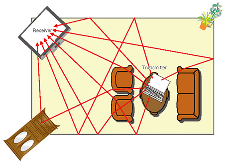 1. IntroductionWireless systems, such as cell phones, wireless local area networks, and wireless personal area networks (WPANs), have come to be widely used in our lives. These systems will also play an important role in future home networks. On the other hand, with the rapid progress of information and communications technologies, including high-performance personal computers (PCs) and high-speed Internet access lines like fiber to the home, the data sets being handled by consumers, such as video and music files, are drastically increasing in size year by year. Therefore, wireless systems are being pressured to support high-speed data transmission with gigabit-per-second-class data rates. One practical way to achieve such high-speed wireless systems is to allocate and use the huge bandwidth available in the millimeter-wave band. When these systems are used in home networks, technology standards are required because home networks consist of devices provided by many vendors. This article focuses on an antenna model developed for the standardization of millimeter-wave WPANs and discusses why a new antenna model had to be developed. The antenna model is a simple mathematical analog and provides a main-lobe pattern and averaged side-lobe level by setting the antenna¡Çs half-power beamwidth. It enables comprehensive system design by considering signals arriving from all directions including behind the antenna. 2. WPANsWPANs are consumer-oriented short-range wireless communication systems linking personal devices. They were originally developed as low-rate communication systems for connecting a mouse and/or keyboard to a personal computer, a car navigation system to a cell phone, and a music player to a set of headphones. They were found to be a very cost effective way of linking devices. Two widely used WPAN technologies are Bluetooth and ZigBee. A very wide frequency band near 60 GHz has been or will be allocated as an unlicensed band in many countries. Examples are 59–66 GHz in Japan, 57–64 GHz in the USA, Canada, and Korea, and 57–66 GHz in European countries and Australia. This band is a good candidate for achieving ultrafast WPAN systems suitable for future home networks. To take advantage of the broad unlicensed bandwidth in the 60-GHz band, several standardization activities are focusing on developing standards for this band [1]. The 60-GHz-band WPAN system is promising for supporting uncompressed high-definition video streaming and ultrafast downloading of huge files from a server, namely kiosk file downloading. 3. Propagation channels of millimeter-wave WPANsAll wireless systems use radio waves that propagate through the air. The radio waves are reflected by walls and diffracted by obstacles. As a result, the receiver captures scattered signals that arrive from many directions with different time offsets. This propagation environment yields the propagation channel or simply channel. The propagation channel strongly affects system performance. Hence, accurate modeling of it is important in designing new wireless systems. A typical example of WPAN usage is schematically shown in Fig. 1. A transmitter and receiver are located in a small room. The sofa, chairs, table, and cabinet act as obstacles. Signals from the transmitter are reflected and diffracted by the walls and obstacles. They arrive at the receiver from different directions with different time offsets. In this multipath environment, the delayed signals can improve the system performance as well as degrading it. In a typical standardization process, several systems are proposed, and their performances are evaluated and compared in order to narrow down the proposals to only one. In this process, each proposer must use the same channel model so that comparisons are correct and fair. Therefore, standardization task groups for wireless systems must define the channel model before calling for proposals.