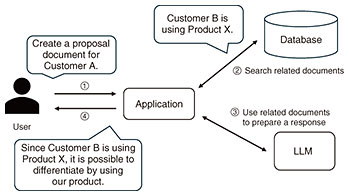 In practical applications of LLMs, special caution is required when using data collected from the web or provided by users for fine-tuning. Externally sourced data pose a higher risk of backdoor attacks, as they may contain malicious data crafted by attackers. In contrast, when the fine-tuning dataset is created entirely in-house, the likelihood of contaminated data being included is low; therefore, the risk of backdoor attacks is reduced. 2.3 Sensitive information leakageSensitive information leakage refers to the issue that arises when personal data or confidential information—contained in fine-tuning datasets prepared to answer company-specific questions or in RAG databases—are inadvertently output during interactions with users. For example, as illustrated in Fig. 3, when using an LLM specialized for creating proposal documents, there is a possibility that sensitive client information included in past proposals used for training may be disclosed. Similarly, in the case of a customer support chatbot, such leakage can occur if personal or attribute information from chat logs—used during system development—is included in responses. A well-known empirical study on GPT-2 demonstrated that, when generating text at random, the model’s output could contain email addresses and full names present in web-sourced datasets used for its training [3].