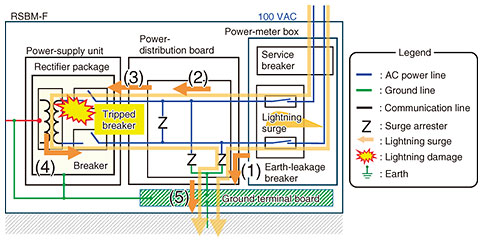 The internal configuration of the RSBM-F that was investigated on-site is shown in Fig. 2. Although the RSBM-F has a standard configuration, from the perspective of lightning-damage prevention, we observed the following three improvement points.