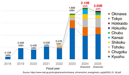 Feature Articles: Creating Innovative Next-generation Energy Technologies Maximizing Renewable Energy Use in Datacenters through Watt-bit CollaborationAbstractThe proliferation of generative AI (artificial intelligence) has led to a surge in power demand for datacenters (DCs), making the effective use of renewable energy (RE) a critical challenge. NTT Space Environment and Energy Laboratories is tackling this challenge by maximizing RE usage through watt-bit collaboration, using two approaches: dynamic distributed control of DC workloads and DC placement optimization. This article explains the background, challenges, and overall technical framework of this effort. Keywords: watt-bit collaboration, datacenter, renewable energy 1. BackgroundThe proliferation of large-scale data processing, including generative artificial intelligence (AI), has rapidly increased the power demand of datacenters (DCs). Advanced learning and inference processes, such as natural language processing models and image generation models, require enormous computational resources and consume power on a scale orders of magnitude greater than conventional systems. For example, the power consumption of training OpenAI¡Çs GPT-3 language model, which powers ChatGPT, is estimated to be 1287 MWh [1]¡½equivalent to the electricity generation of a single nuclear power plant in one hour. As generative AI becomes more widespread, DC power demand is expected to grow even further. Across society, momentum for decarbonization is growing, driving rapid adoption of renewable energy (RE) sources such as solar and wind power. In the 7th Strategic Energy Plan [2], the Japanese government has set a policy to maximize the introduction of RE as a major power source, aiming to increase its share in the power supply mix from 21.8% in fiscal year 2022 to 40–50% by fiscal year 2040. Within the NTT Group, “NTT Green Innovation toward 2040” [3] serves as the environmental and energy vision. To achieve carbon neutrality for mobile (wireless base stations) and DCs by 2030, the Group is actively promoting adoption of RE. This is expected to enable the effective RE utilization to meet the growing power demand of expanding DCs. However, a problem has emerged where RE cannot be fully used. The potential for RE deployment is concentrated in regions such as Hokkaido, Tohoku, Chugoku, and Kyushu, which are blessed with vast land and favorable natural conditions. Conversely, DCs are clustered around major metropolitan areas, such as Tokyo and Osaka, due to considerations of communication latency and maintenance convenience. This results in a geographical mismatch between the potential for RE deployment and the power demand of DCs. Solar and wind power generation exhibit significant fluctuations in output depending on weather conditions, season, and time of day. In contrast, DCs require consistent operation 24 hours a day, 365 days a year, leading to relatively stable power demand. This creates a temporal mismatch as well. Due to this geographic and temporal mismatch, output curtailment of RE (suppressing RE generation) is implemented in regions and time periods where power supply, including RE, exceeds demand. This is done to ensure stable operation of the power grid. Figure 1 shows the trend in RE output curtailment in Japan. In fiscal year 2024, over 2 billion kWh of RE was subject to output curtailment, concentrated particularly in Kyushu and Tohoku, regions with high potential for RE deployment. As RE deployment continues to expand, the occurrence of this output curtailment will become an unavoidable issue. Therefore, it is essential to establish technologies and reform systems to resolve this mismatch between RE output and DC power demand, thereby maximizing RE utilization. Currently, plans [4] for developing transmission networks to enable interregional power sharing have been outlined. However, these require enormous investments in the trillions of yen and take many years to implement. They alone cannot achieve maximum RE utilization or stable power supply. A new mechanism is required to resolve this mismatch. This involves not only the supply side but also the demand side, such as DC systems, operating flexibly in response to RE generation conditions to adjust the supply-demand balance.