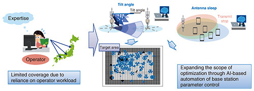 Optimizing mobile base stations is inherently complex because changing the parameters of one station not only affects its coverage area but also impacts the coverage areas of neighboring stations. It is thus necessary to derive optimal parameters across multiple base stations simultaneously. This process is mainly carried out by network operators, who determine base station parameters for live environments through trial and error, drawing on past experience and simulator-based evaluations. Since parameter derivation through such trial and error requires considerable time, and the range of areas that can be optimized remains limited, there is growing anticipation for the automation of parameter optimization using artificial intelligence (AI) and other advanced methods.
